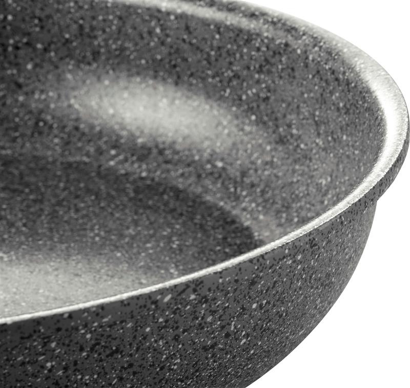 Ciesz się gotowaniem bez ryzyka przypalenia dzięki wytrzymałej powłoce ceramicznej Ceraforce® Granitium. Jest ona nawet trzy razy bardziej wytrzymała niż nasze poprzednie powłoki ceramiczne i charakteryzuje się doskonałymi właściwościami nieprzywierania, a także nie zawiera PFAS. Dzięki innowacyjnej technologii dna Radiant, patelnia szybko i równomiernie się nagrzewa, dzięki czemu każde z Twoich dań może być doskonale przygotowane. Rączka może wytrzymać nawet do 10 kg i jest wyposażona we wkładki silikonowe. Idealna dla Twoich naczyń kuchennych, ponieważ chroni je przed zarysowaniami podczas użytkowania.