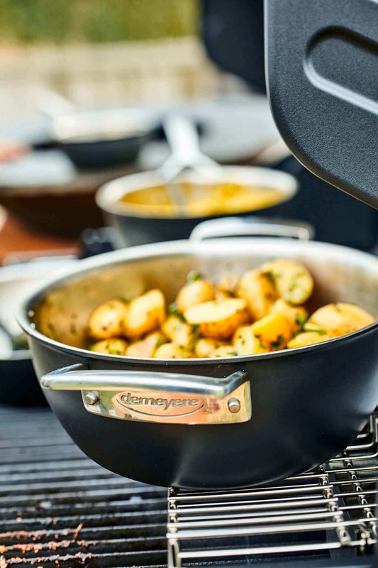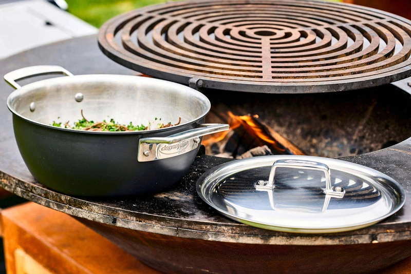 Czy może być coś smaczniejszego niż wspólne gotowanie gulaszu pod rozgwieżdżonym niebem? Patelnia do gotowania na wolnym ogniu Black 5 to wytrzymałe narzędzie do gotowania. Wytrzymuje temperaturę do 350°C. Wysokiej jakości stal nierdzewna i specjalna 5-warstwowa konstrukcja zapewniają optymalną dystrybucję ciepła. Dzięki temu udka z kurczaka, gulasz, ciecierzyca, papryka i inne satysfakcjonujące składniki bez wysiłku nabiorą smaku. Również na grillu gazowym lub po prostu na płycie indukcyjnej. Duże uchwyty z serii Black 5 dają dodatkową pewność i są przystosowane do użycia grubych rękawic ognioodpornych. Nie ma więc ryzyka, jest tylko kulinarna zabawa na świeżym powietrzu.