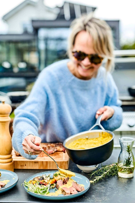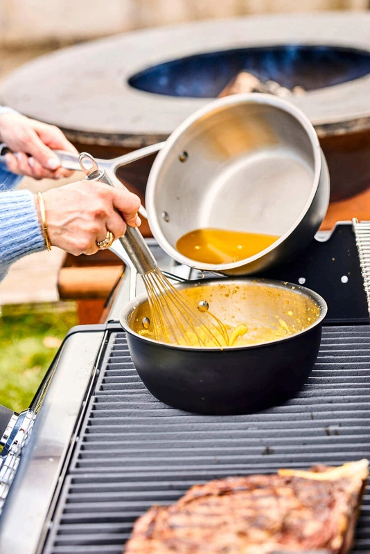 Dobry sos pieprzowy do grillowanych steków? A może filety z dorsza na grillu wymagają kremowego sosu z białym winem? W takim razie rondelek stożkowy Black 5 jest Twoim solidnym pomocnikiem. Dzięki zewnętrznej żaroodpornej powłoce wytrzymuje temperaturę do 350°C. Wysokiej jakości stal nierdzewna i specjalna 5-warstwowa konstrukcja zapewniają optymalną dystrybucję ciepła. Dzięki temu wszystkie kremowe kreacje odniosą sukces, w tym płynny karmel na deser. Również na grillu gazowym lub po prostu na płycie indukcyjnej. Duże uchwyty serii Black 5 marki Demeyere zapewniają dodatkową pewność siebie i są przystosowane do użycia grubych rękawic ognioodpornych. Nie ma więc ryzyka, jest tylko kulinarna zabawa na świeżym powietrzu.