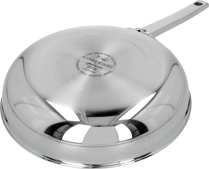 Patelnia płytka Demeyere Ecoline 5 ze stali nierdzewnej z powłoką zapobiegającą przywieraniu Ceraforce® to wymarzony pomocnik w kuchni dający olśniewające rezultaty. Korpus wykonany jest z 5-warstwowego materiału. Solidna kombinacja stopów szybko przewodzi ciepło, dzięki czemu można piec równomiernie i w kontrolowany sposób - nawet na małym ogniu. Dzięki powłoce zapobiegającej przywieraniu Ceraforce® możesz ładnie i równomiernie smażyć bez przywierania, z niewielką ilością tłuszczu. Niezależnie od tego, czy przygotujesz panierowany filet rybny, omlet z serem czy plastry tofu.