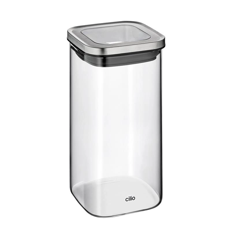Cilio - pojemnik kuchenny, szkło borokrzemowe/stal nierdzewna, 10 x 10 x 19 cm, 1,35 l Cubo