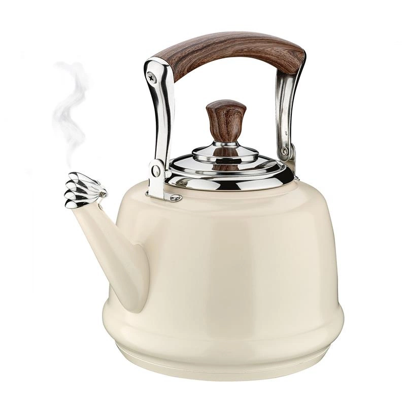 * czajnik o tradycyjnym wyglądzie z korpusem wykonanym z lakierowanej stali nierdzewnej