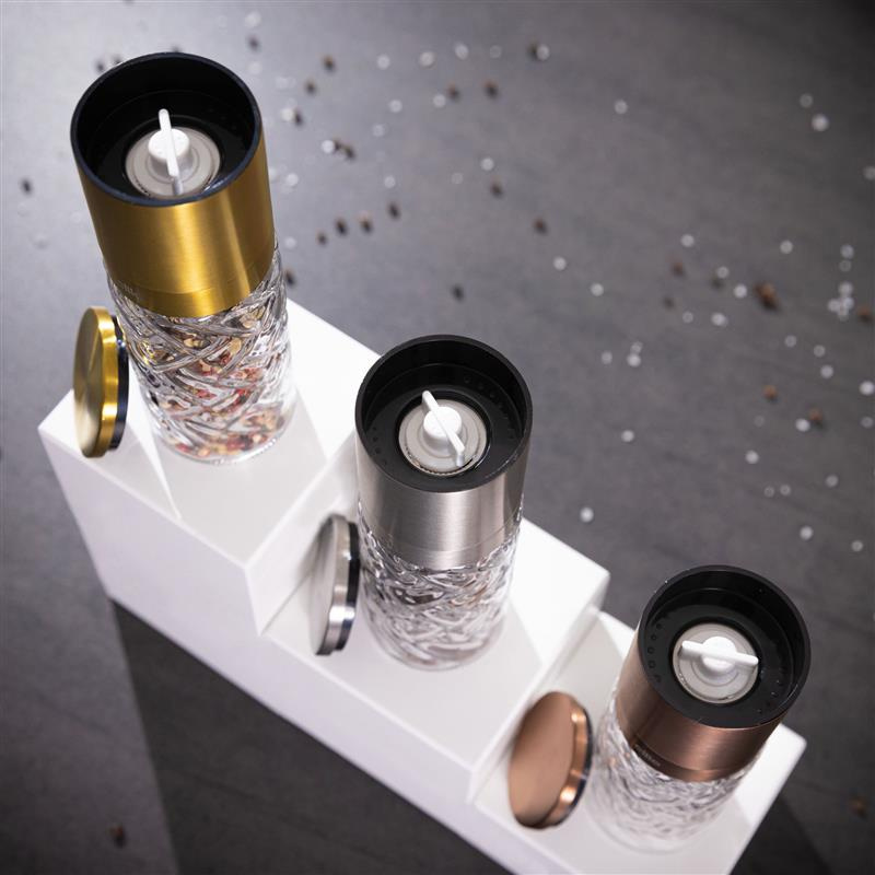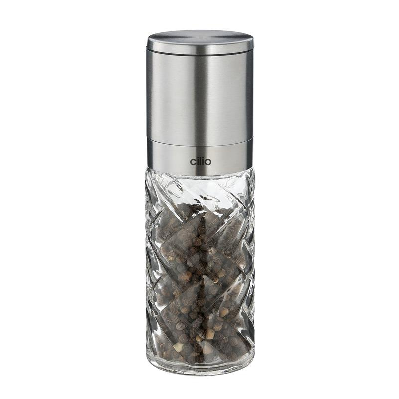 Cilio - młynek do soli lub pieprzu, szkło/stal nierdzewna, śred. 5,5 x 16 cm, kolor stalowy Cristallo