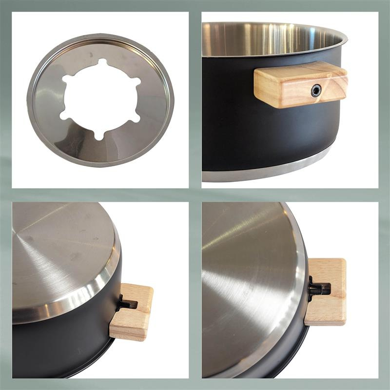 * garnek przystosowany jest do używania na kuchenkach (również indukcyjnych), co pozwoli wstępnie podgrzać ser, olej lub bulion