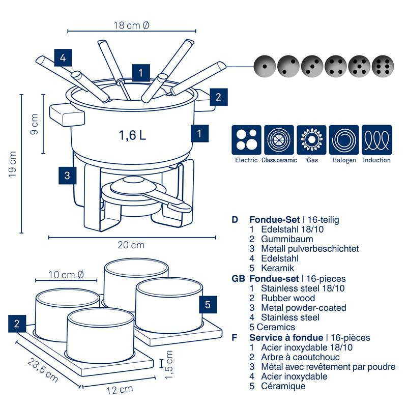 Kela - zestaw do fondue dla 6 os., 16 el., 1,6 l, śred. 18 x 19 cm Gunten