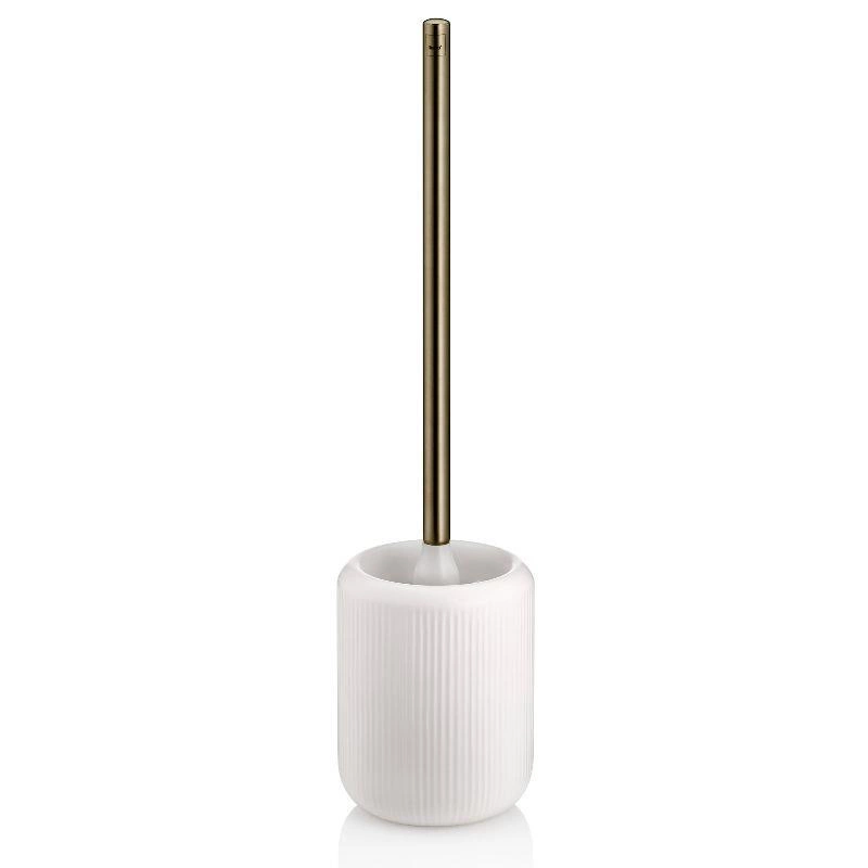 Kela - zestaw toaletowy, ceramika/stal nierdzewna 18/10, śred. 11 x 45,5 cm, biało-złoty Adele Kela - zestaw toaletowy, ceramika/stal nierdzewna 18/10, śred. 11 x 45,5 cm, biało-złoty Adele Szczotka do sedesu ze stalową rączką w ceramicznym stojaku.
