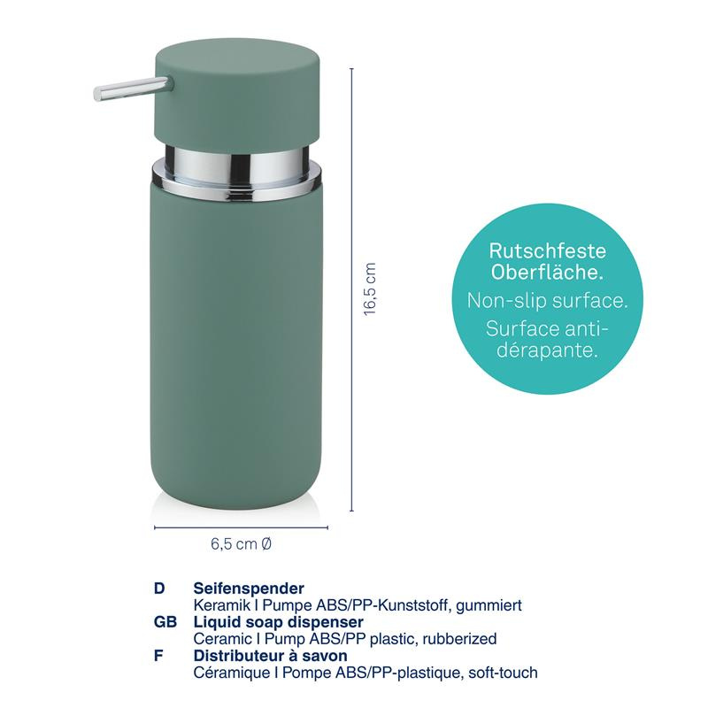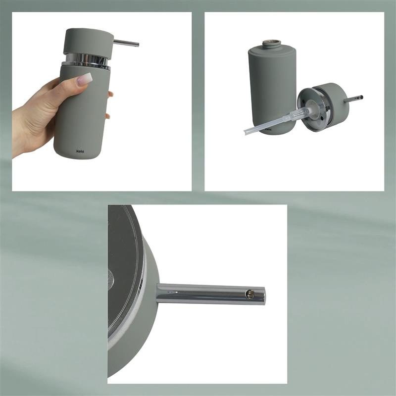 Kela - dozownik do mydła w płynie, ceramika/tworzywo sztuczne, 0,3 l, śred. 6,5 x 16,5 cm, zielony Per