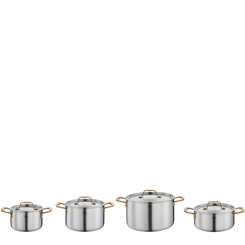 Spring - zestaw garnków, 4 el., stal nierdzewna, uchwyty w kolorze różowego złota GOURMET