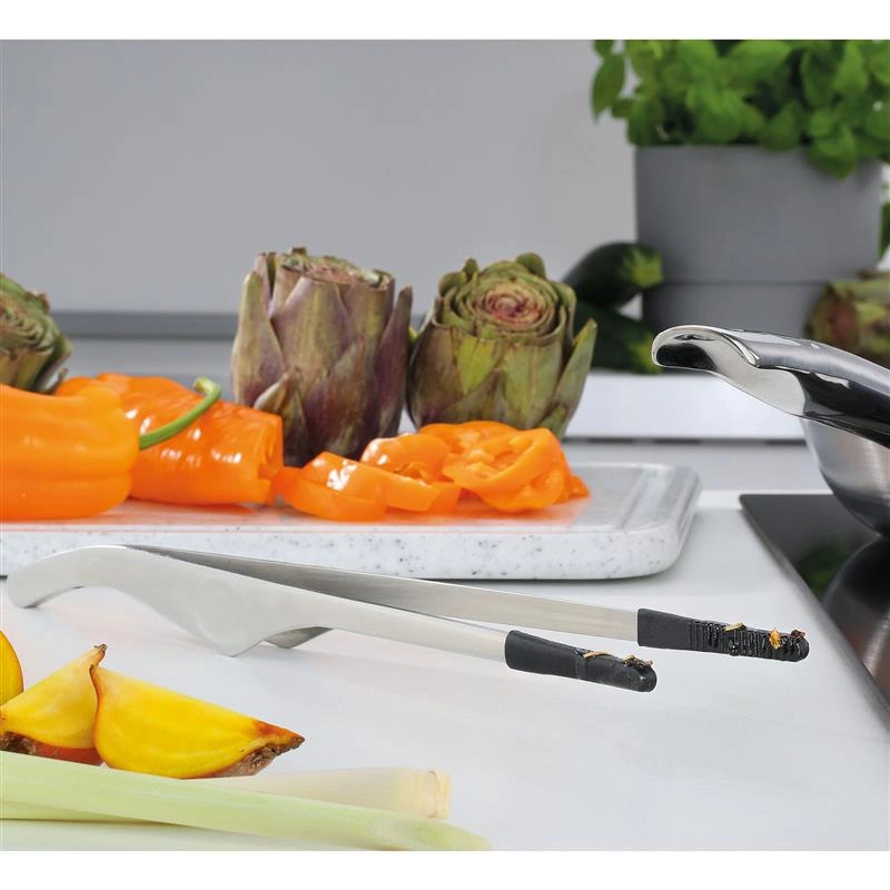 Stalowe szczypce kuchenne.