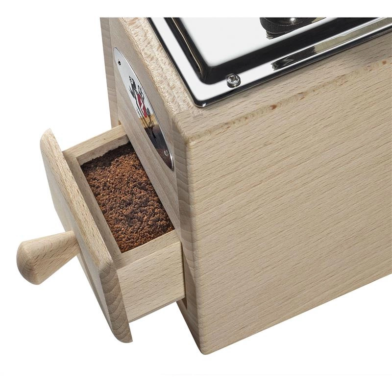 Młynek do kawy wykonany z drewna bukowego.