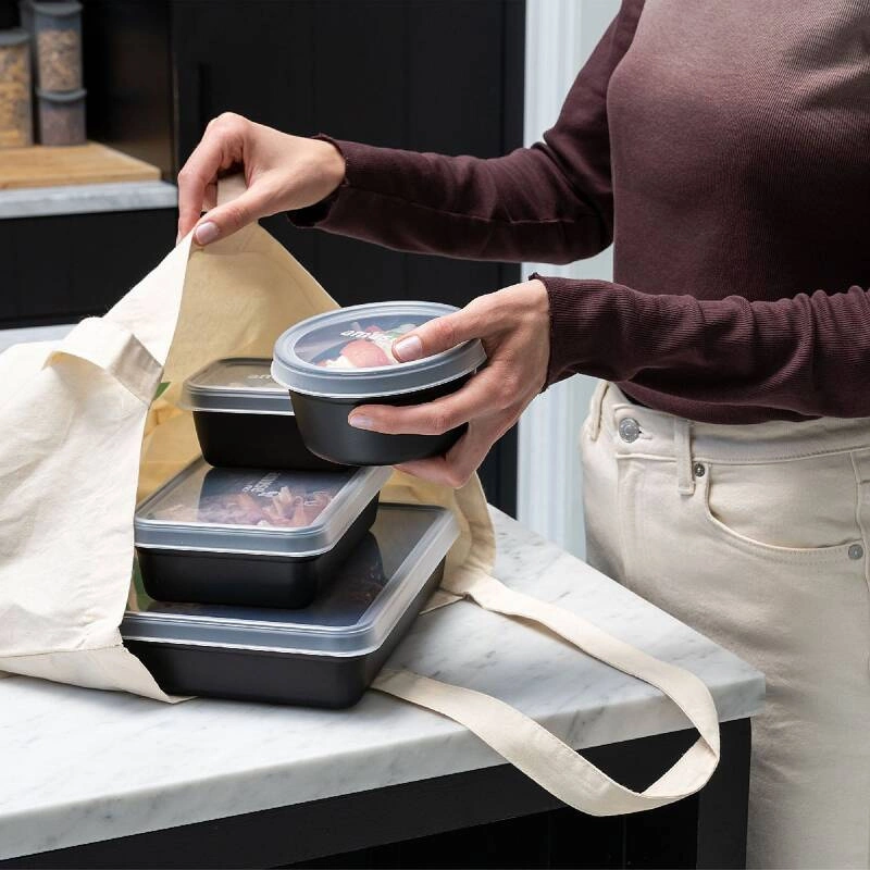 Pojemnik wielokrotnego użytku 1.2L z pokrywką, przyda się do przenoszenia żywności, np. podczas zakupów spożywczych. Do użytku profesjonalnego w lokalach gastronomicznych oraz branży HoReCa. Szczelna pokrywka. Do użytkowania w zamrażalce, zmywarce. Można używać w mikrofali ( bez pokrywki). W 100% nadaje się do recyklingu. Certyfikat BRC (do kontaktu z żywnością). Produkcja w Europie z tworzywa BPA free. Wytrzymałość temperaturowa : od -30°C do + 100°C.