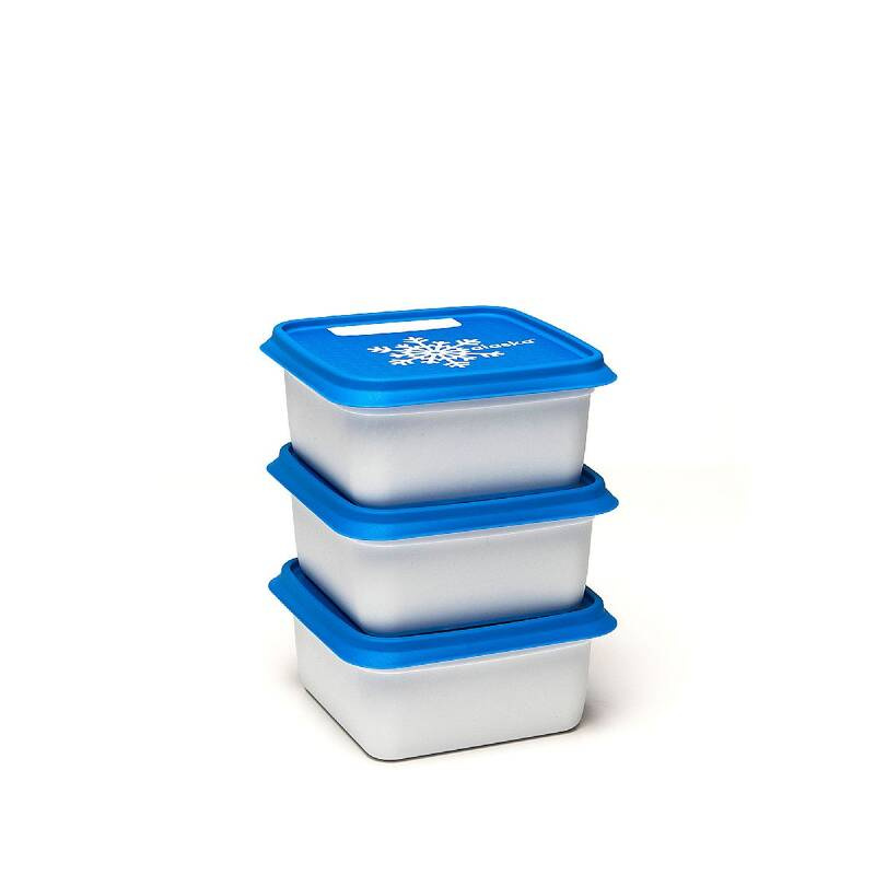 3 pojemniki do zamrażarki o pojemności 0.5L ze szczelnymi pokrywki z miejscem do zapisania ołówkiem daty lub nazwy mrożonego produktu. Do użytku w mikrofali (bez pokrywki). Można myć w zmywarce. Można ustawiać w zamrażarce jeden na drugim. Nadają się do recyklingu. Certyfikat BRC (do kontaktu z żywnością). Wyprodukowano w Belgii. BPA free. Używać w temp. -30°C do +100°C. Poj: 3 x 0.5L (500ml). Wymiary pojemników: 12,8 x 6 cm.