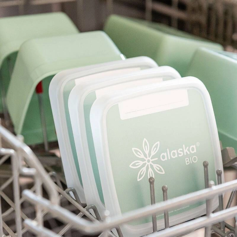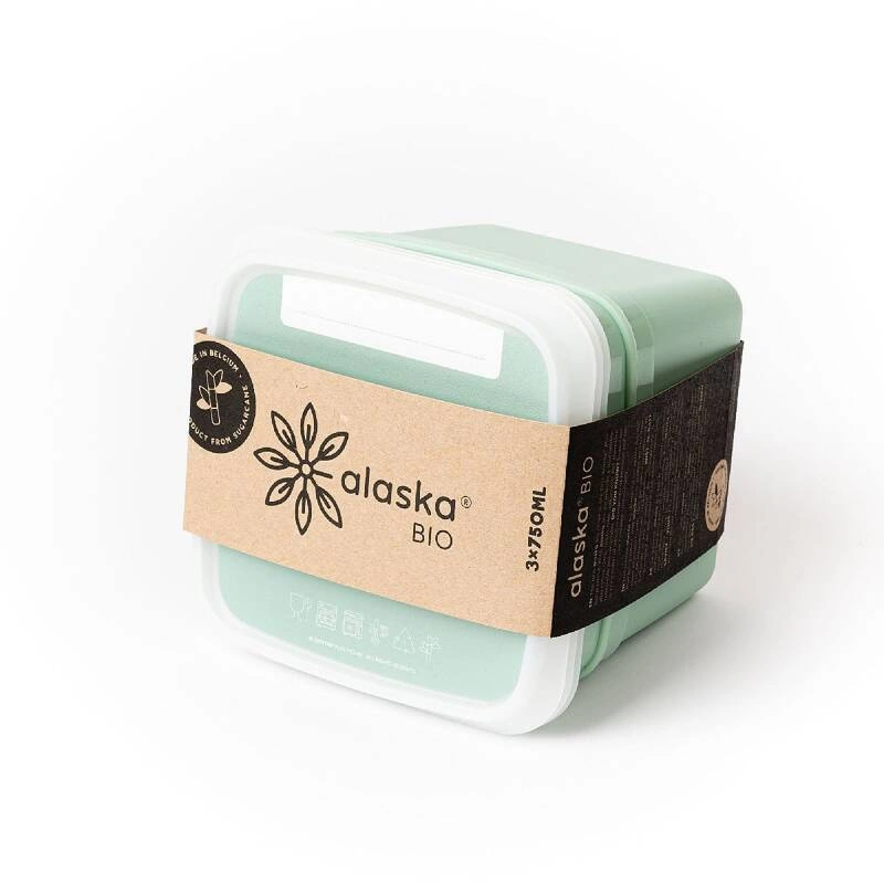 Eko pojemniki do zamrażarki z serii Alaska BIO w 70% z trzciny cukrowej. Pokrywki z miejscem do zapisania daty. Do użytku w zakresie -30°C do +100°C. Można myć w zmywarce. Nadają się do recyklingu. Certyfikat BRC (do kontaktu z żywnością). Wyprodukowano w Belgii. Nie używać w mikrofalówce. Poj.: 3 x 0,75L (750ml). Wymiary: 12,8 x 12,8 x 8,5 cm.