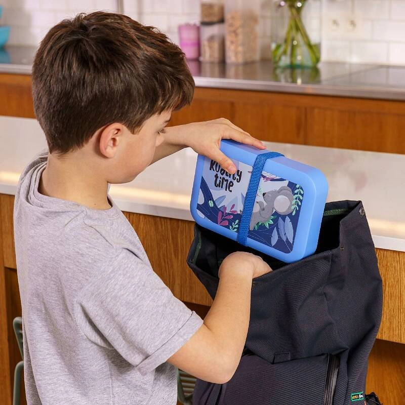 Lunchbox do szkoły z grafiką misia Koala "Koality time" posiada wygodne otwieranie i zamykanie. Gumka gwarantuje transport jedzenia bez ryzyka otwarcia. Można myć w zmywarce. Nadaje się do recyklingu. Certyfikat do kontaktu z żywnością. Europejska produkcja z tworzywa bez BPA. Odporny na temperaturę od -30°C do +100°C. Wymiary: 21 x 14 x 5 cm
