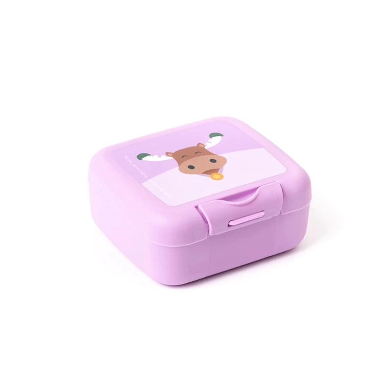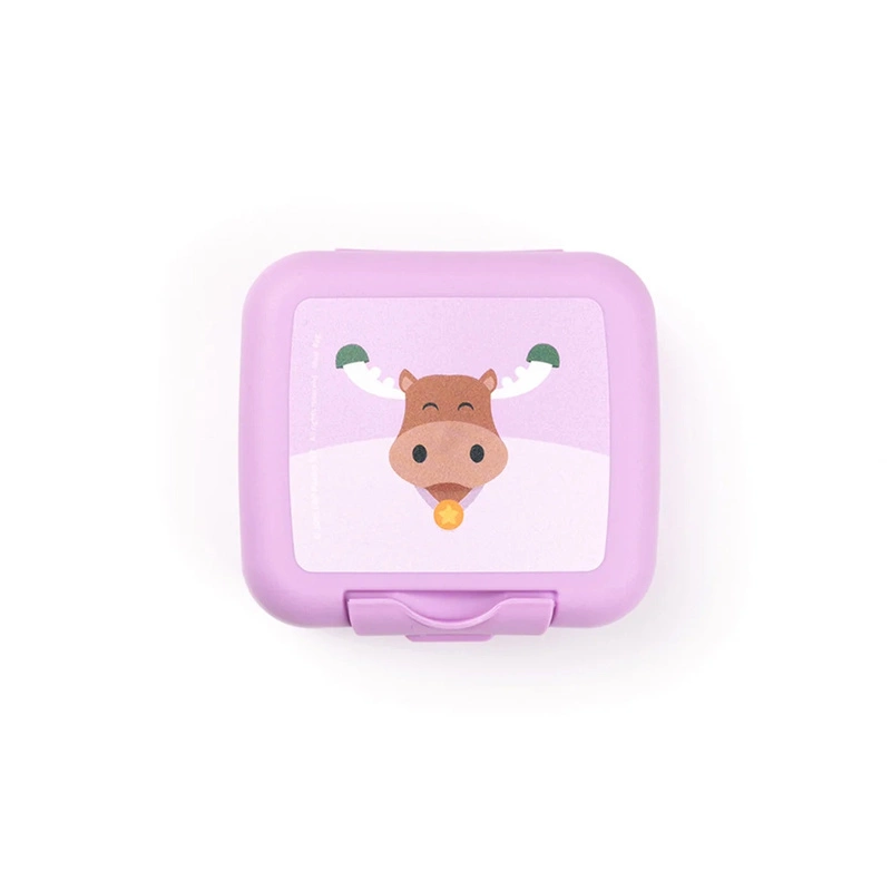 Pojemnik na przekąski z grafiką łosia z wygodnym otwieraniem za pomocą klipsa. Można myć w zmywarce. Nadaje się do recyklingu. Certyfikat do kontaktu z żywnością. Europejska produkcja z tworzywa bez BPA. Odporny na temperaturę od -30°C do +100°C. Wymiary: 9 x 8 x 4 cm.