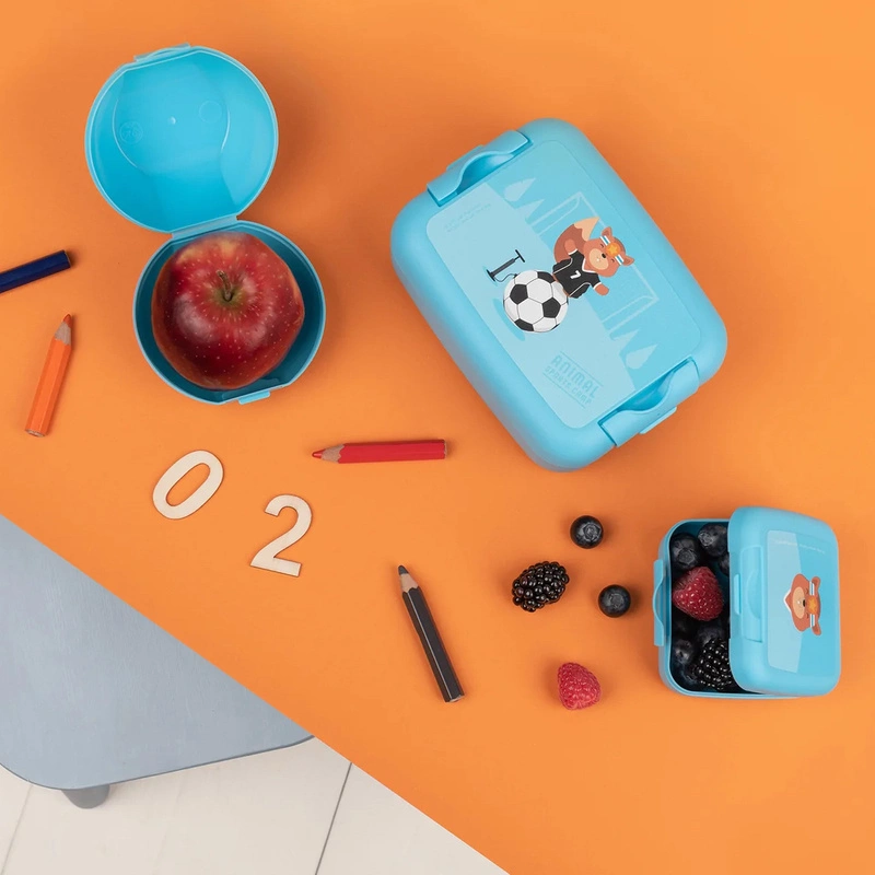 Pojemnik na przekąski z grafiką wiewiórki z wygodnym otwieraniem za pomocą klipsa. Można myć w zmywarce. Nadaje się do recyklingu. Certyfikat do kontaktu z żywnością. Europejska produkcja z tworzywa bez BPA. Odporny na temperaturę od -30°C do +100°C. Wymiary: 9 x 8 x 4 cm.