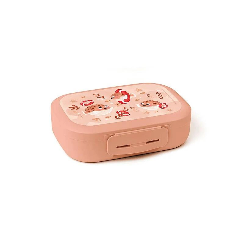 Lunchbox do szkoły z grafiką rybki z wygodnym otwieraniem za pomocą klipsa. Można myć w zmywarce. Nadaje się do recyklingu. Certyfikat do kontaktu z żywnością. Europejska produkcja z tworzywa bez BPA. Odporny na temperaturę od -30°C do +100°C. Wymiary: 18 x 13,2 x 5 cm.