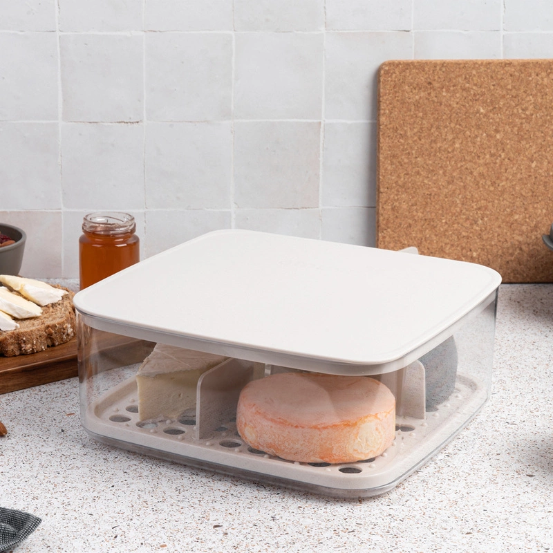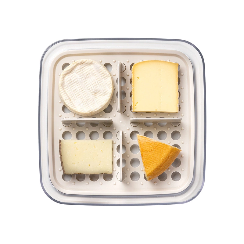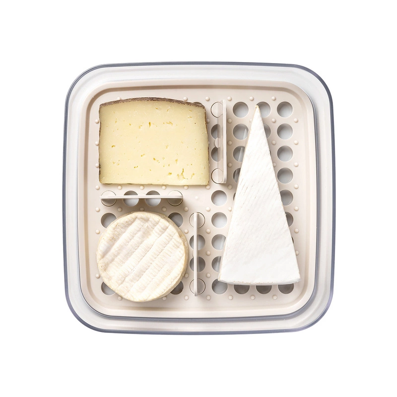 Pojemnik do serów z przegródkami powstał we współpracy z belgijskim mistrzem serowarstwa Van'em Tricht. Składa się z pojemnika, tacy z otworami, 4 ruchomych przegródek i pokrywki. Do przechowywania serów w lodówce oraz ich serwowania. Specjalne dno ma wpływ na świeżość serów. Producent zaleca wyłożenie dna pojemnika kawałkiem papierowego ręcznika w celu polepszenia wchłaniania wilgoci. Można myć w zmywarce i używać w zamrażarce. Nie wolno używać w mikrofalówce. Odporny od -30°C do +100°C. Certyfikat BRC (do kontaktu z żywnością). BPA free. Wymiary: 24.1 x 24.1 x 9.6 cm
