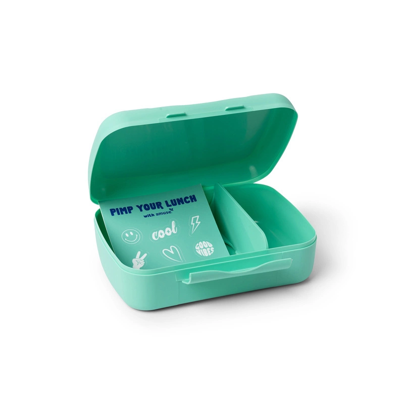Pojemnik wykonany z tworzywa BPA free z wygodnym klipsem. W zestawie naklejki. Łatwy w utrzymaniu czystości, można myć w zmywarce. Nie używać w mikrofalówce. Nadaje się do recyklingu. Certyfikat BRC (do kontaktu z żywnością). Wyprodukowany w UE. Wymiary: 21 x 15,6 x 7,1 cm
