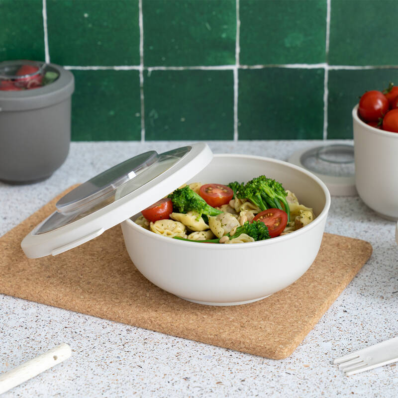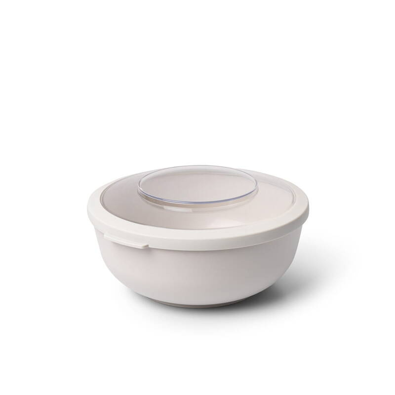 Miska kuchenna z pokrywką może pełnić rolę pojemnika. Przezroczyste wieczko umożliwia sprawdzenie zawartości bez otwierania. Pokrywka pełni rolę podstawki. Można myć w zmywarce i używać w mikrofalówce (bez pokrywki) lub używać w zamrażarce. Nadaje się do recyklingu. Certyfikat BRC (do kontaktu z żywnością). Produkcja w Belgii z tworzywa BPA free. Odporność temper. -30°C do + 100°C. Poj: 1L. Wymiar miski: 17.3 x 8.9 cm [śr x wys].