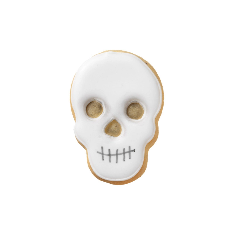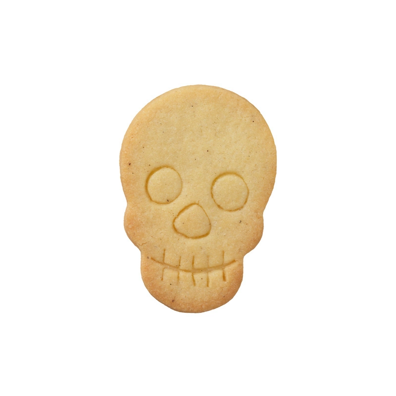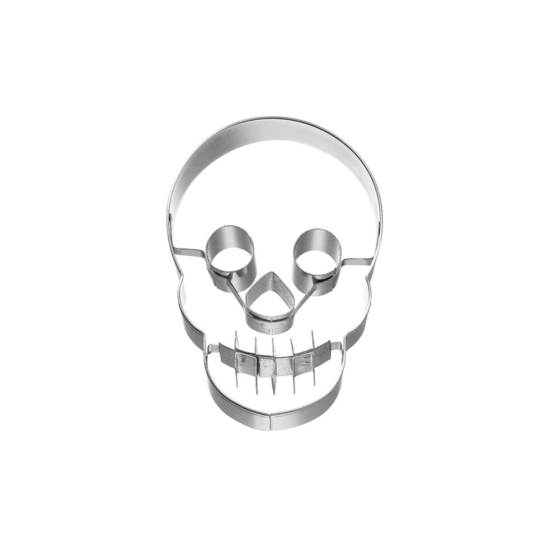 Foremka do ciastek w kształcie czaszki. Gwarancja wieloletniego, bezproblemowego użytkowania. Jakość i grubość stali nierdzewnej gwarantuje trwałość foremki. Ostre krawędzie umożliwiają dokładne wykrojenie ciasta, a zaokrąglone brzegi są całkowicie bezpieczne dla dłoni. Można myć w zmywarce.