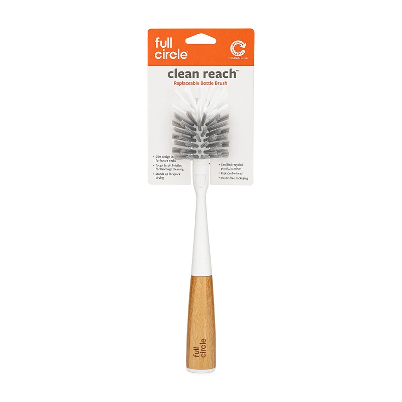 Produkt przeznaczony do mycia butelek na wodę, kubków termicznych, butelek dla dzieci, wazonów. Wydłużona konstrukcja, idealnie pasująca do szyjek butelek i mycia trudno dostępnych miejsc.Wymienna końcówka, które przedłuża żywotność produktu oraz ogranicza ilość odpadów. Certyfikowane nylonowe włosie, bambus bez toksycznych powłok lakieru oraz plastik z recyklingu sprawiają, że produkt jest wydajny i przyjazny dla środowiska. Wymiary: 6 x 6 x 29 cm.