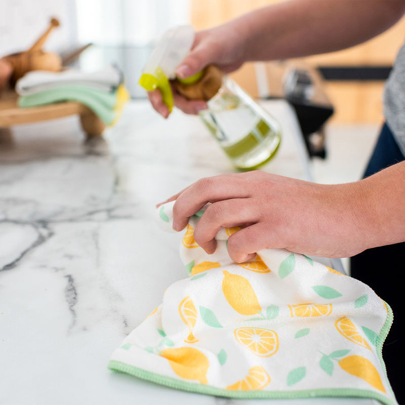 Uniwersalne ściereczki do czyszczenia i odkurzania powierzchni bez chemikaliów, nie rysują szkła ani stali nierdzewnej. Certyfikat GRS na tworzywo pochodzące z recyklingu. Każda ściereczka to ~ 3,5 plastikowych butelek uratowanych przed składowiskiem śmieci. Zestaw 3 ściereczek. Skład: 80% poliester z recyklingu, 20% poliamid. Wymiary: 30,5 x 30,5 cm.