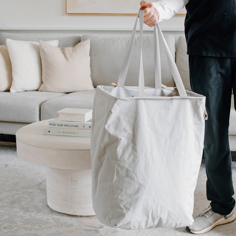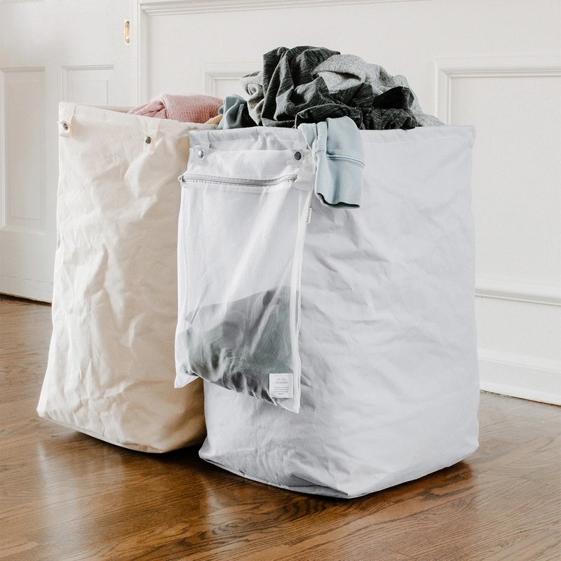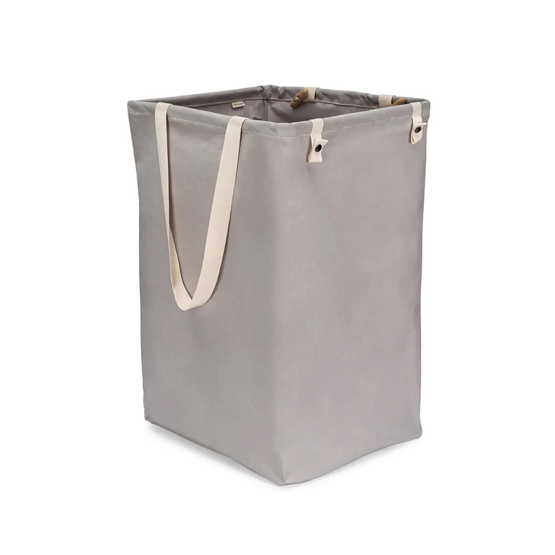 Składany kosz na pranie o lekkiej konstrukcji, dużej pojemności i długich uchwytach, które ułatwiają przenoszenie pojemnika. Sprzedawany z zatrzaskami do przypinania woreczków do prania bielizny (do kupienia osobno). Dwa lub trzy pojemniki można łączyć. Zatrzaski i elastyczne pętle na każdym koszu można połączyć, zapewniając jeden system sortowania prania. Kosz na pranie można składać na płasko. Pojemnika na pranie nie można prać w pralce. Opakowanie bez plastiku. Wymiary: 39,4 x 33,5 x 58 cm.