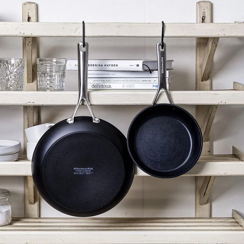 Zestaw klasycznych patelni KitchenAid z kutego aluminium o średnicach 20 cm i 28 cm