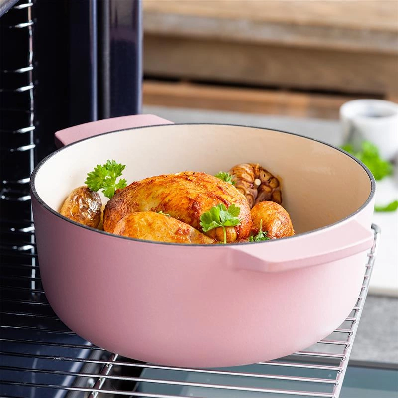 Różowy garnek z żeliwa o pokaźnej pojemności 5,2 litra