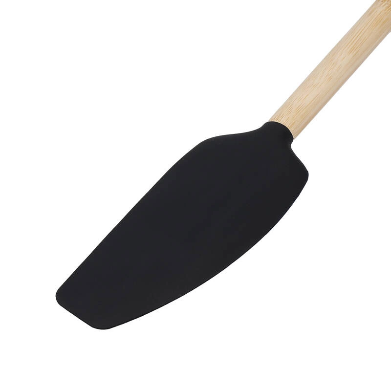 Łopatka silikonowa do dzieży odporna na temperaturę do 260 stopni Celsjusza. Rączka wykonana z ekologicznego drewna bambusowego. Do kontaktu z powierzchniami ceramicznymi, żeliwnymi i non stick. Myć ręcznie. Wymiary: 35.3 x 6.2 x 2 cm
