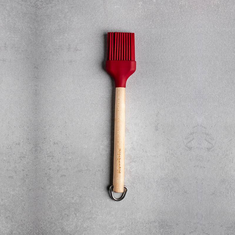 KitchenAid pędzelek silikonowy z drewnianą rączką do natłuszczania blach i form do pieczenia, smarowania patelni, gofrownic lub pokrywania mięs glazurą. Silikon odporny na temperaturę do 260 stopni C. Rączka wykonana z trwałego i przyjaznego dla środowiska drewna. Myć ręcznie ciepłą wodą i łagodnym płynem do mycia naczyń. Wymiary: 22 x 5,5 cm