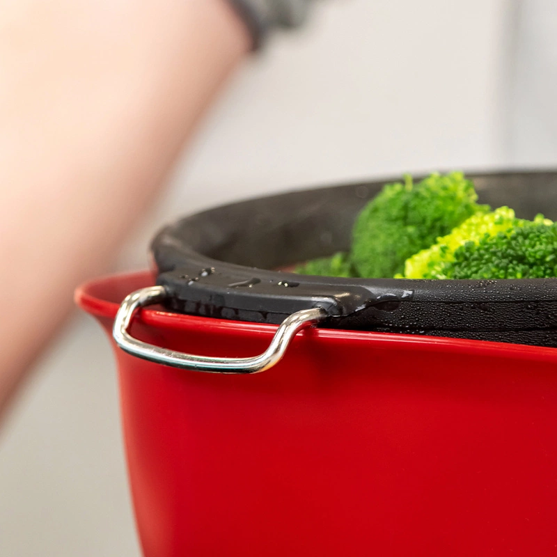 Sito do przesiewania i odcedzania z drobnymi oczkami pozwala m.in przesiać mąkę, wypłukać ryż lub odcedzić makaron. Wygodny, długi uchwyt i boczny haczyk do oparcia o krawędź naczynia. Można myć w zmywarce. Wymiary: 17,5 x 36 cm.