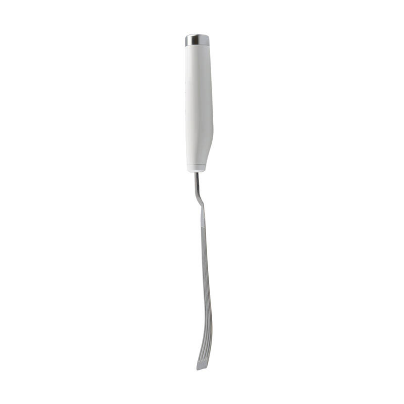 KitchenAid Culinary Tools - łopatka do smażenia CLASSIC White Łopatka kuchenna do smażenia delikatnych potraw. Elastyczna, ścięta krawędź z łatwością wsuwa się pod potrawy. Można myć w zmywarce. Podczas smażenia nie pozostawiać w patelni. Wymiary: 32,5 x 7 cm.