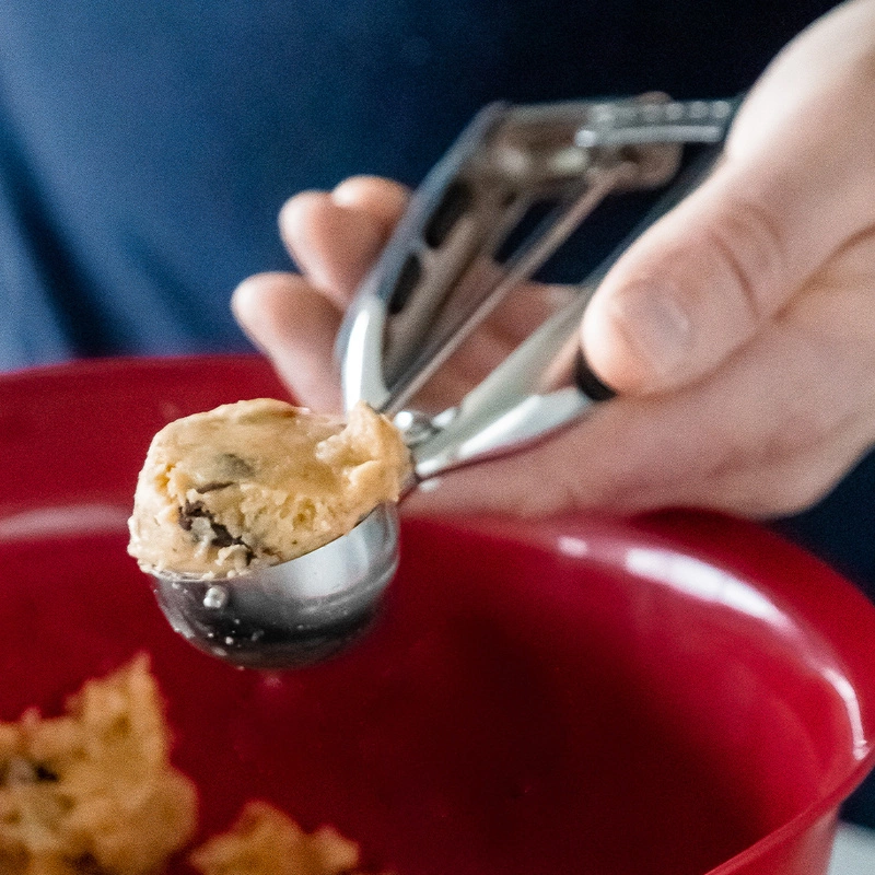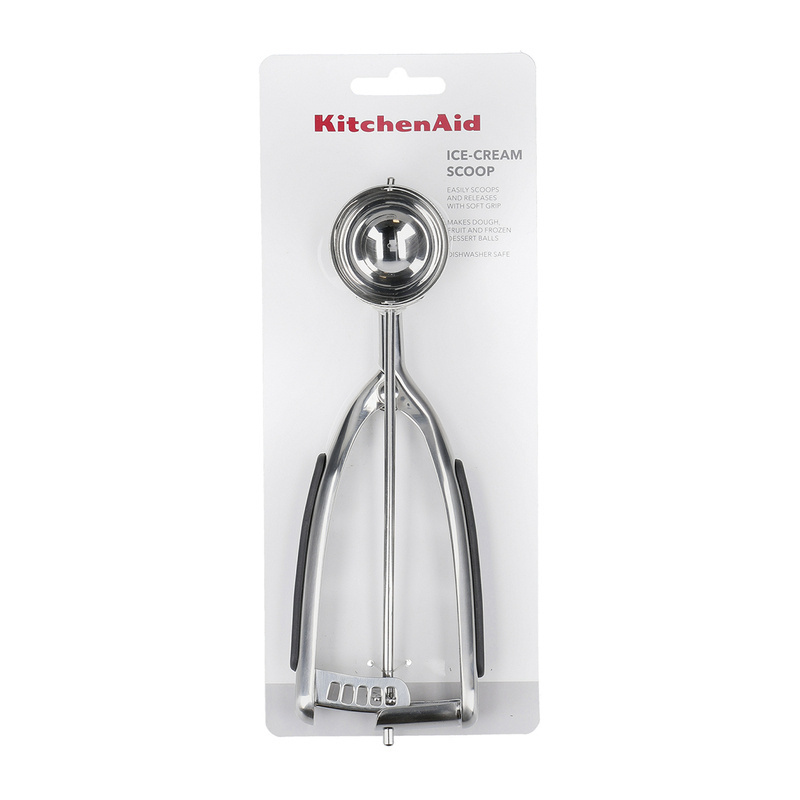 KitchenAid Culinary Tools - gałkownica ze spustem Gałkownica ze stali nierdzewnej do formowania kulek lodów lub do odmierzania porcji ciasta podczas pieczenia ciasteczek. Gumowane uchwyty i wytrzymały mechanizm ze spustem. Można myć w zmywarce.