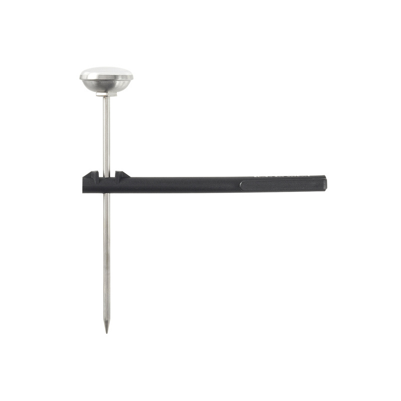 Termometr szpilkowy do mierzenia temperatury mięs podczas smażenia w zakresie 0-100oC. Tarcza o średnicy 2,5 cm. Posiada certyfikat NSF. Istnieje możliwość kalibracji termometru. Nie używać w piekarniku Myć tylko ręcznie, nie namaczać w wodzie. Wymiary: 14,5 x 2,5 cm.