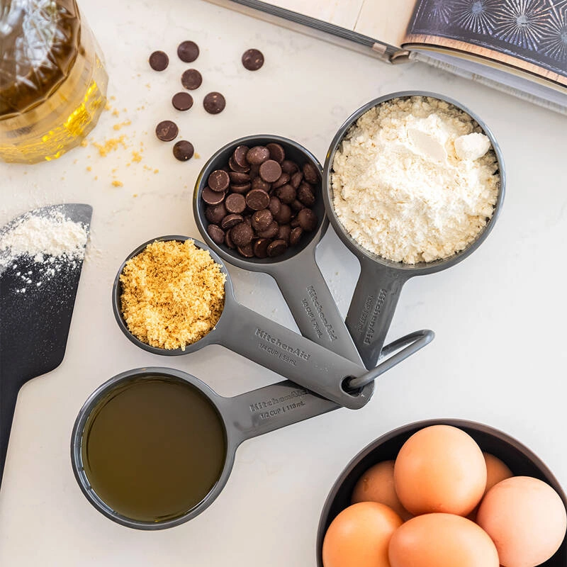 KitchenAid Culinary Tools - miarki kuchenne cups 4 szt. Charcoal Grey KitchenAid Culinary Tools - miarki kuchenne cups 4 szt. Charcoal GreyUchwyty z zaznaczeniem miar.
