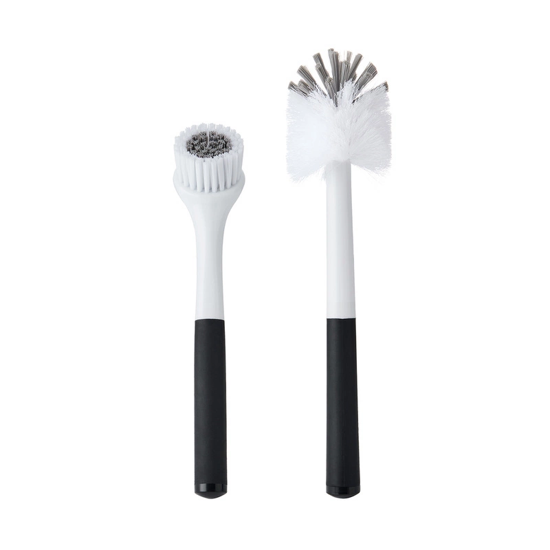 Włosie obu szczotek jest wykonane z wytrzymałego, ale jednocześnie miękkiego nylonu. Bezpieczne do stosowania na naczyniach szklanych oraz z powłokami nieprzywierającymi. (Nie dotyczy skrobaka). Uchwyty są antypoślizgowe, dzięki czemudobrze trzymają się dłoni.Można myć w zmywarce.