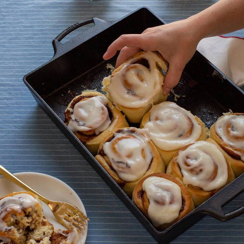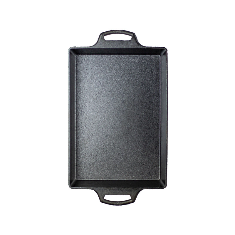 Duża brytfanna z bocznymi uchwytami do pieczenia, nagrzewa się równomiernie i kumuluje ciepło. Zaimpregnowana naturalnym olejem roślinnym. Naturalnie wolne od PFOA i PTFE. Myć ręcznie, a po umyciu wytrzeć do sucha oraz zaimpregnować olejem, w celu zabezpieczenia powierzchni przez korodowaniem. Wyprodukowana w USA. Wymiary zewnętrzne: 42 x 23,6 x 6 cm. UWAGA: produkt nie jest przystosowany do użytku na kuchenkach.