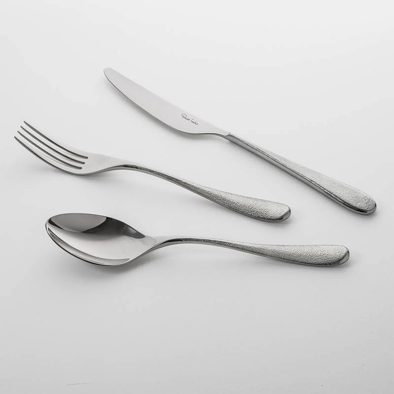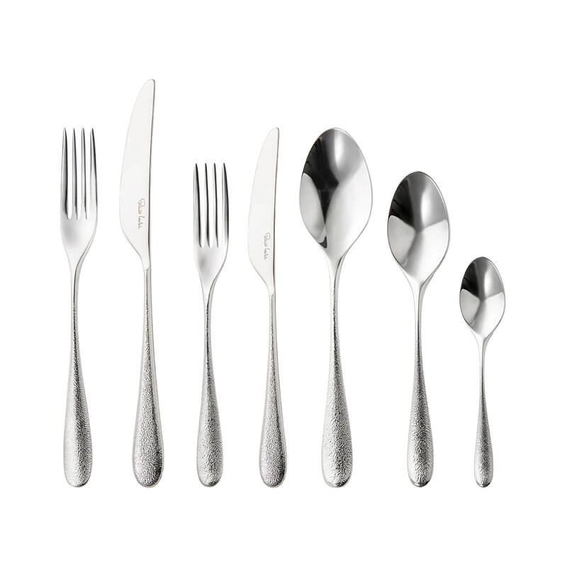 Zestaw sztućców dla 6 osób z linii Sandstone42-częściowy, upominkowy zestaw sztućców z subtelnej serii sztućców, który składa się z 6 pełnych nakryć stołowych.6 widelców6 noży6 widelców do przystawek6 noży do przystawek6 łyżek do zupy6 łyżek do deserów6 łyżeczek do herbatyWszystkie sztućce są doskonale wyważone i idealnie układają się w dłoni. Używanie ich jest przyjemnością, która potęguje smak posiłku.Unikalna teksturowana faktura trzonków sztućców potęguje doznania dotykowe podczas posługiwania się nimi.Kolekcja Sandstone została zainspirowana naturalnym zjawiskiem jakim jest starzenie się kamieni w skutek upływu czasu.Faktura sztućców Sandstone podobnie jak faktura kamienia wydaje się ulegać zjawisku erozji, na skutek której powierzchnia staje się lekko ziarnista, ale jednocześnie satynowo gładka.Sztućce są wykonane przy użyciu najwyższej jakości stali nierdzewnej 18/10 o grubości 5mm, w satynowym wykończeniu.Zestaw sztućców zapakowany jest w estetyczne pudełko. Idealnie nadaje się na prezent.UWAGI:Wskazówki dotyczące eksploatacji i konserwacji produktów marki Robert Welch znajdują się w załączonej poniżej instrukcji. Prosimy o zapoznanie się z jej treścią aby użytkowanie produktów znakomitej brytyjskiej marki było satysfakcjonujące.Film o producencieInstrukcja pielęgnacji i konserwacji (PDF - 58 KB)