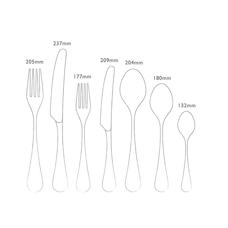 Sztućce są wykonane przy użyciu najwyższej jakości stali nierdzewnej 18/10 o grubości 5mm, specjalnie polerowanej, a w przypadku noży także hartowanej.