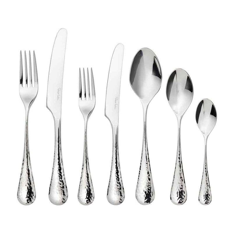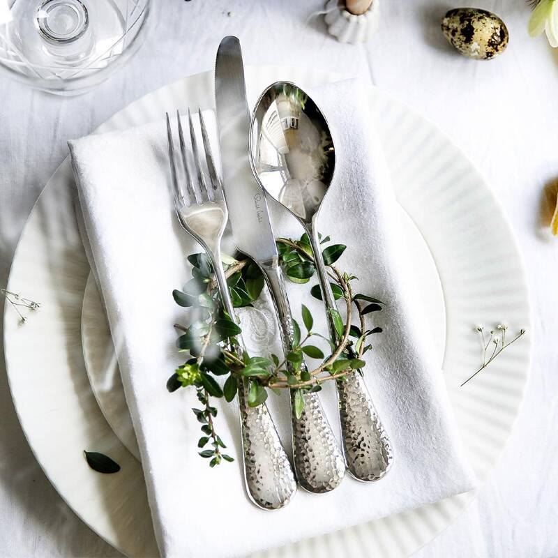 Teksturowane trzonki sztućców inspirowana techniką złotnictwa zwaną młotkowaniem - to cecha charakterystyczna sztućców z linii HONEYBOURNE.