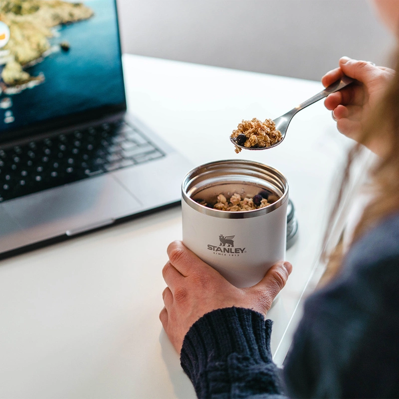 Termos obiadowy Stanley Adventure Polar 0,53LTermos wykonany ze stali nierdzewnej 18/8, naturalnie wolnej od BPA. izolacja termiczna w postaci próżni pomiędzy dwoma stalowymi ściankami utrzymuje temperaturę posiłków/płynów do 6 godzin (zimne lub gorące) Szeroki otwór ułatwia jedzenie posiłków oraz mycie termosu Kompaktowy, poręczny kształt z łatwością mieści się w plecaku lub torbie podróżnej Można myć w zmywarce. Nie używać w mikrofalówce Przed użyciem zapoznaj się z papierową instrukcją dołączoną do produktu. Podawane parametry dotyczące utrzymania temperatury dotyczą pełnego naczynia, nieotwieranego przez określony czas. Otwieranie naczynia i częściowe opróżnianie wiąże się z szybszą utratą początkowej temperatury. Dla wydłużenia czasu utrzymania temperatury zaleca się, aby najpierw wypełnić naczynie gorącą wodą i pozostawić na pięć minut szczelnie zamknięte, po czym opróżnić i napełnić docelowym napojem lub potrawą oraz szczelnie zamknąć. W przypadku gdy przechowywany ma być produkt zimny lub chłodny należy użyć wody zimnej.