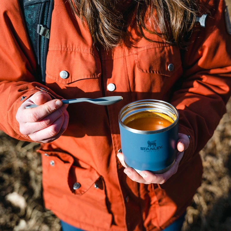 Termos obiadowy Stanley Adventure Abyss 0,53LTermos wykonany ze stali nierdzewnej 18/8, naturalnie wolnej od BPA. izolacja termiczna w postaci próżni pomiędzy dwoma stalowymi ściankami utrzymuje temperaturę posiłków/płynów do 6 godzin (zimne lub gorące) Szeroki otwór ułatwia jedzenie posiłków oraz mycie termosu Kompaktowy, poręczny kształt z łatwością mieści się w plecaku lub torbie podróżnej Można myć w zmywarce. Nie używać w mikrofalówce Przed użyciem zapoznaj się z papierową instrukcją dołączoną do produktu. Podawane parametry dotyczące utrzymania temperatury dotyczą pełnego naczynia, nieotwieranego przez określony czas. Otwieranie naczynia i częściowe opróżnianie wiąże się z szybszą utratą początkowej temperatury. Dla wydłużenia czasu utrzymania temperatury zaleca się, aby najpierw wypełnić naczynie gorącą wodą i pozostawić na pięć minut szczelnie zamknięte, po czym opróżnić i napełnić docelowym napojem lub potrawą oraz szczelnie zamknąć. W przypadku gdy przechowywany ma być produkt zimny lub chłodny należy użyć wody zimnej.