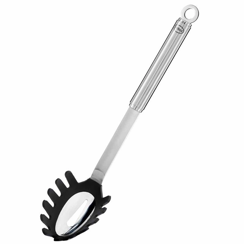 Ząbkowana krawędź i otwór w środku ułatwiają wyjmowanie i porcjowanie makaronu. Silikon chroni również patelnie i garnki dzięki powłoce zapobiegającej przywieraniu. Odporny na temperaturę do 220 stopni C.
