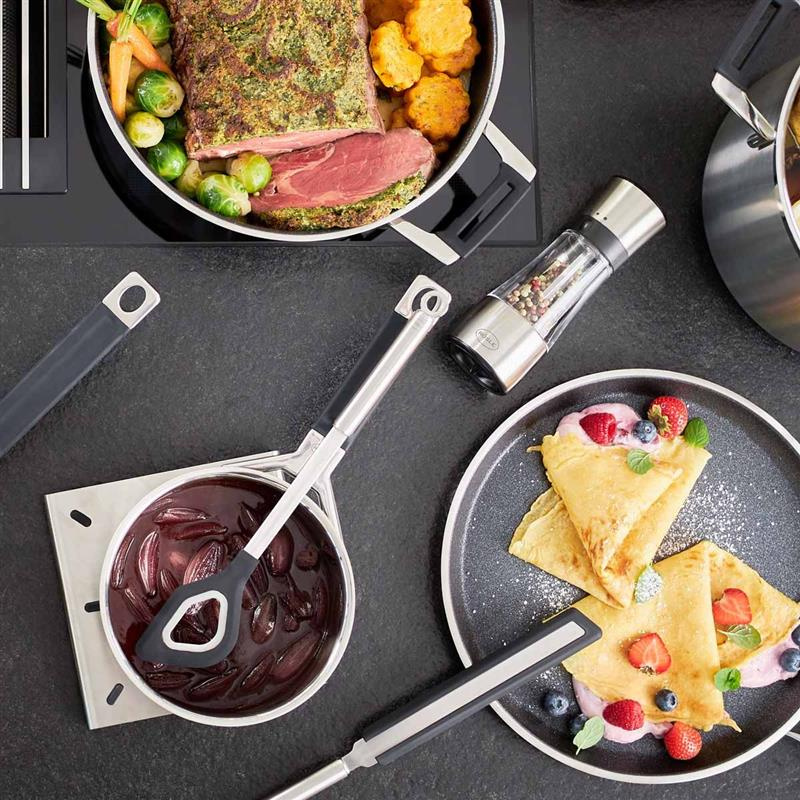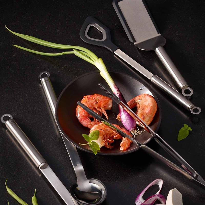 Idealna do pracy na patelniach z powłoką zapobiegającą przywieraniu. Odporna na temperaturę do 220 stopni C. Można myć w zmywarce. Trwała mieszanka stalowo-silikonowa. Idealny towarzysz w codziennej kuchni. Zintegrowany otwór ułatwia mieszanie gęstych zup lub gulaszu.