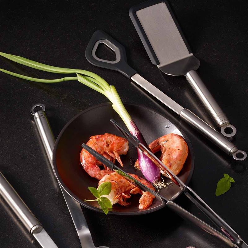 Łopatka do podnoszenia i wyjmowania żywności z patelni lub tacy. Odporny na temperaturę do 220 stopni C. Nie można myć w zmywarce. Trwała mieszanka stalowo-silikonowa.