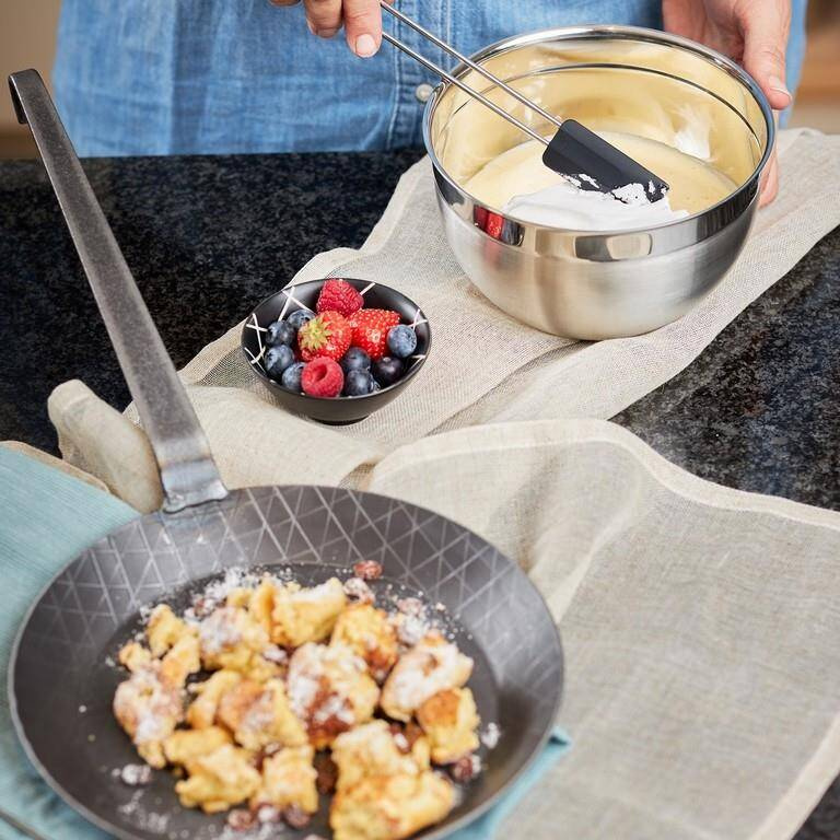 Skrobak do ciasta może być również używany na patelniach z nieprzywierającą powłoką.