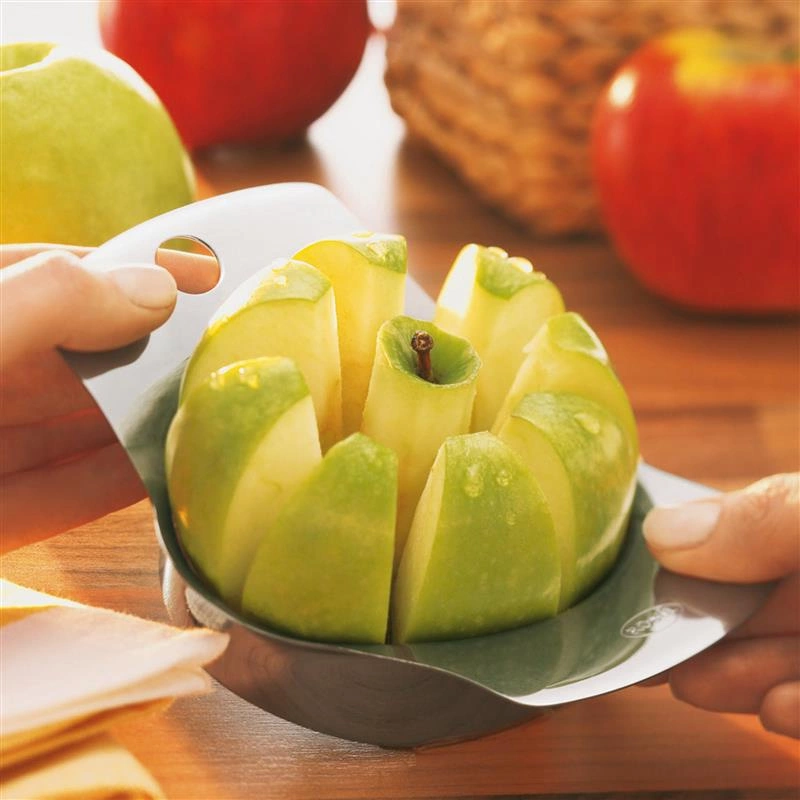 Owoce lub warzywa dzieli się na osiem równych części, a rdzeń wycina się oddzielnie.