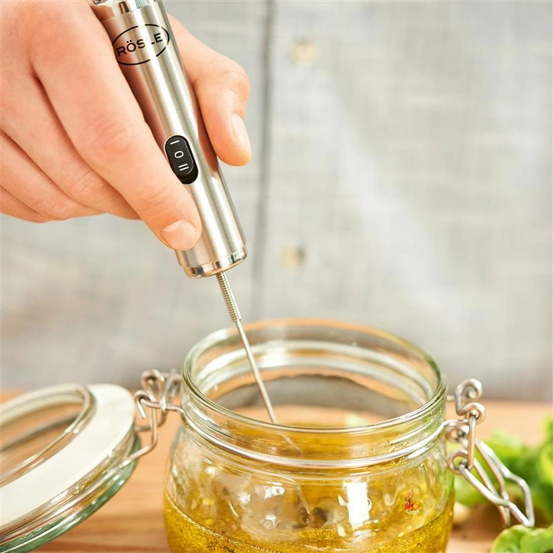 Wielofunkcyjna pianka firmy RÖSLE to praktyczny pomocnik do szybkiego spieniania i mieszania mleka, koktajli mlecznych i winegretów.